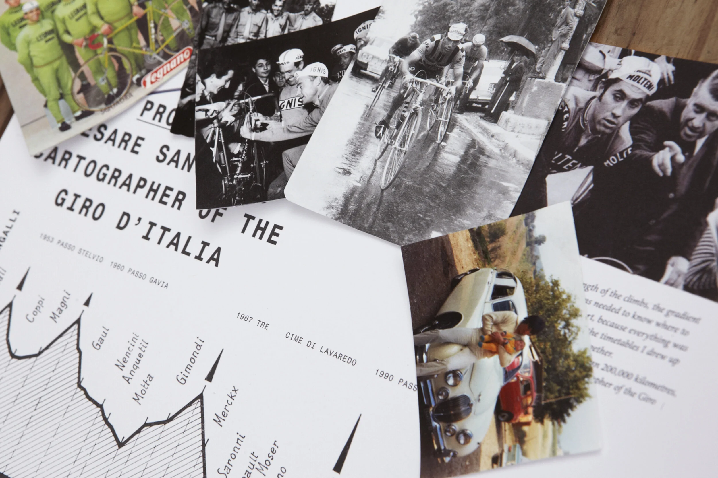 This, however, is a cycling journey with a difference. In a departure from recent cycling convention, they were invited to open not only their hearts, but also their scrapbooks, photo albums and old cupboard drawers. There’s no anodyne photographic agency fodder here, no clichéd Dolomite vistas and no hackneyed portraits of Coppi, Merckx or Pantani. Rather the images conjure the spirit, pathos and beauty of the greatest race on earth and, more poignantly still, of 100 lives conditioned by it.